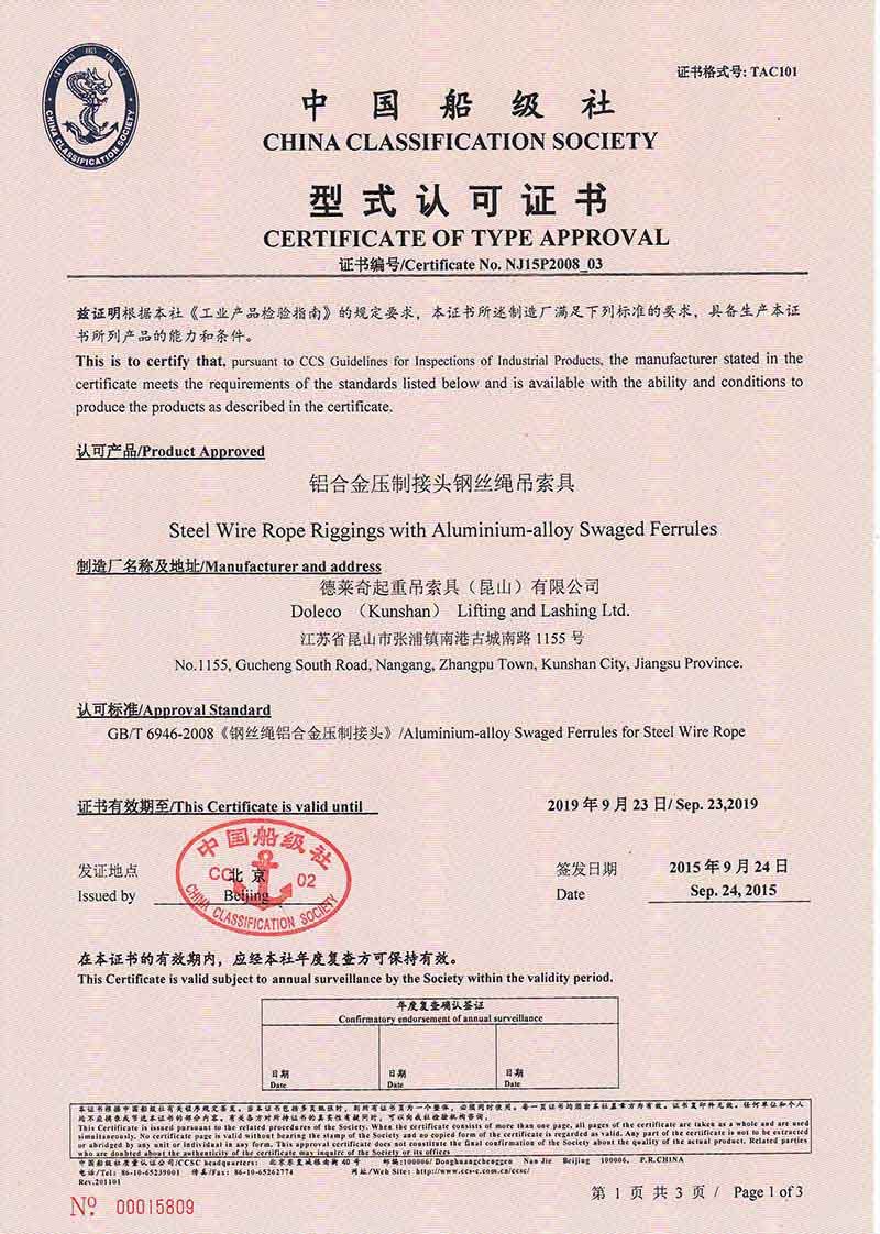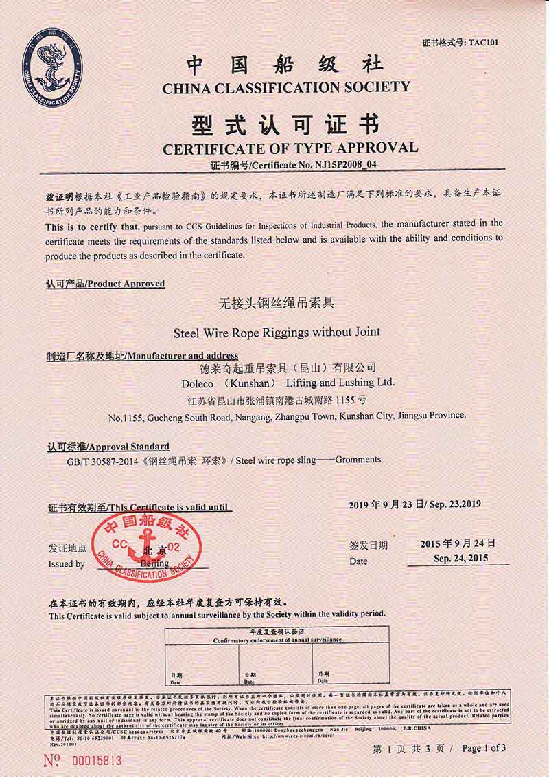 德國多來勁中國船級社型式認(rèn)可證書CCS認(rèn)證