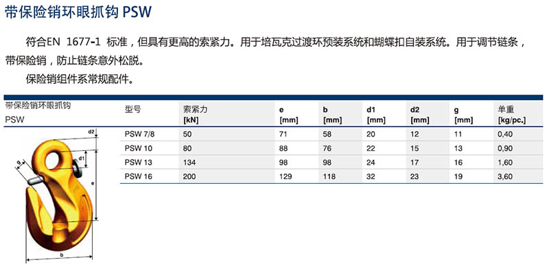 培瓦克Pewag帶保險銷環(huán)眼抓鉤PSW