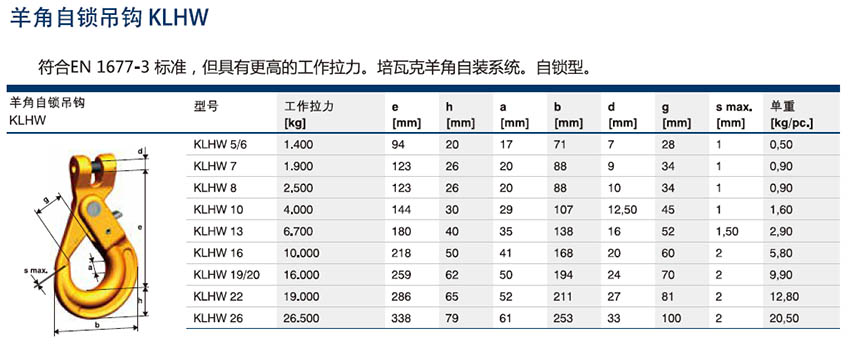 培瓦克Pewag羊角自鎖吊鉤KLHW